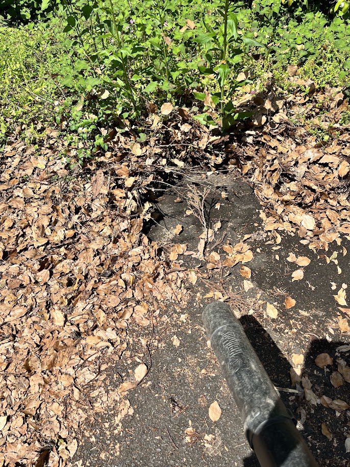 刈った草や枯葉をブロワーの風で飛ばし、高鍋大師周辺を綺麗にしていきます。